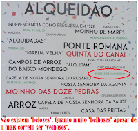 E depois alguém sabe onde fica carceira de baixo!? E o casal da robola? E o que é salicornea!? = E de notar que no Bom Sucesso estava escrito "Afonço Henriques" (coitado do nosso primeiro Rei...) mas alguém emendou manualmente!...